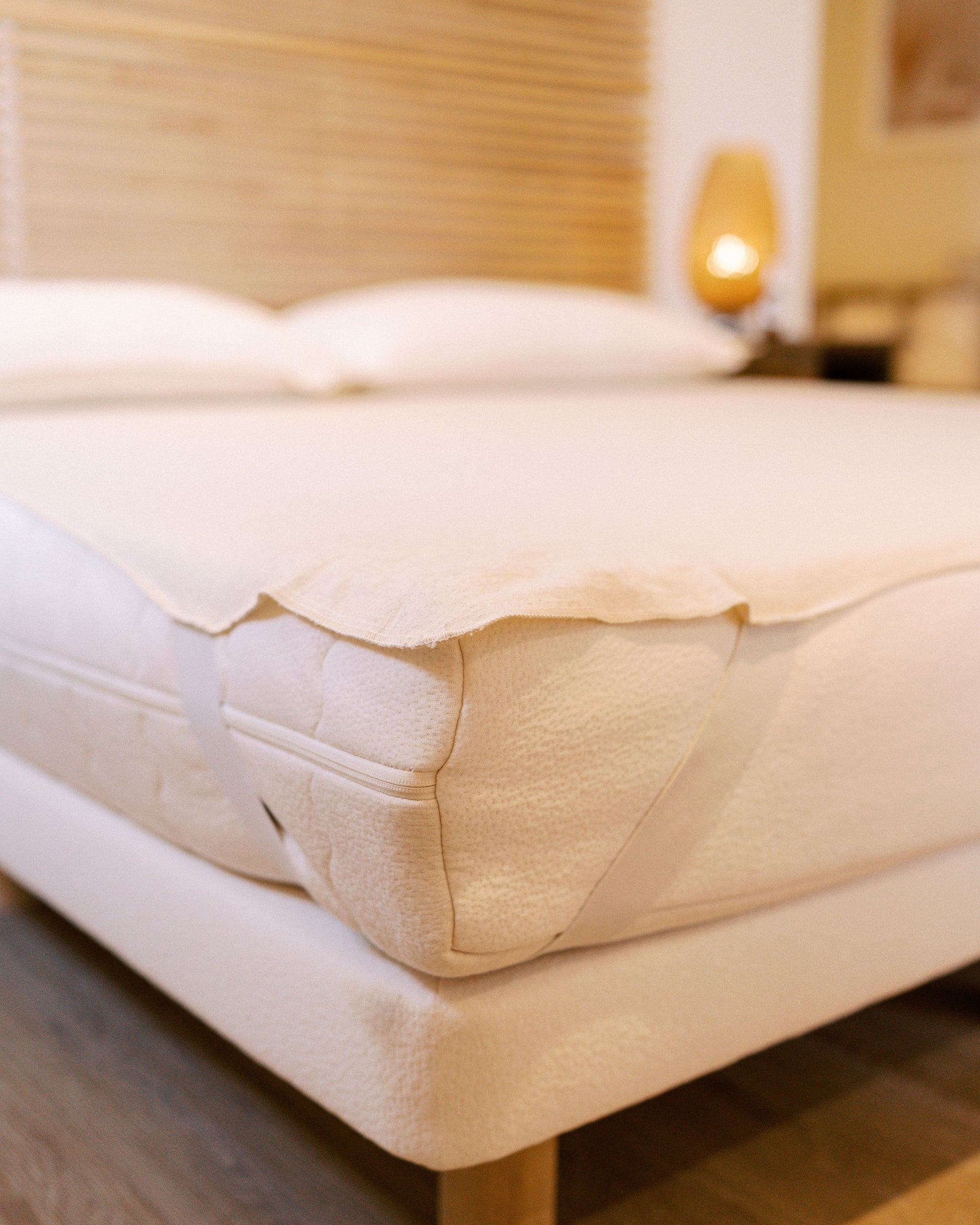 Protect your mattress naturally with GOTS-certified organic wool that's breathable, temperature-regulating, and free from synthetic coatings. The tightly felted fibers are naturally water-repellent, managing moisture while preserving the feel and comfort of your mattress.
